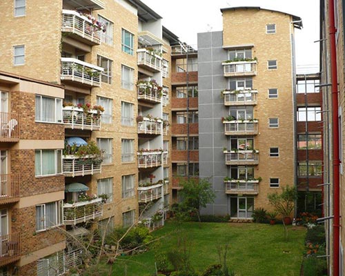 Apartments were built in three sizes, with one or two bathrooms and one or two bedrooms according to size, and each with a 10m² balcony and a parking space in the basement.